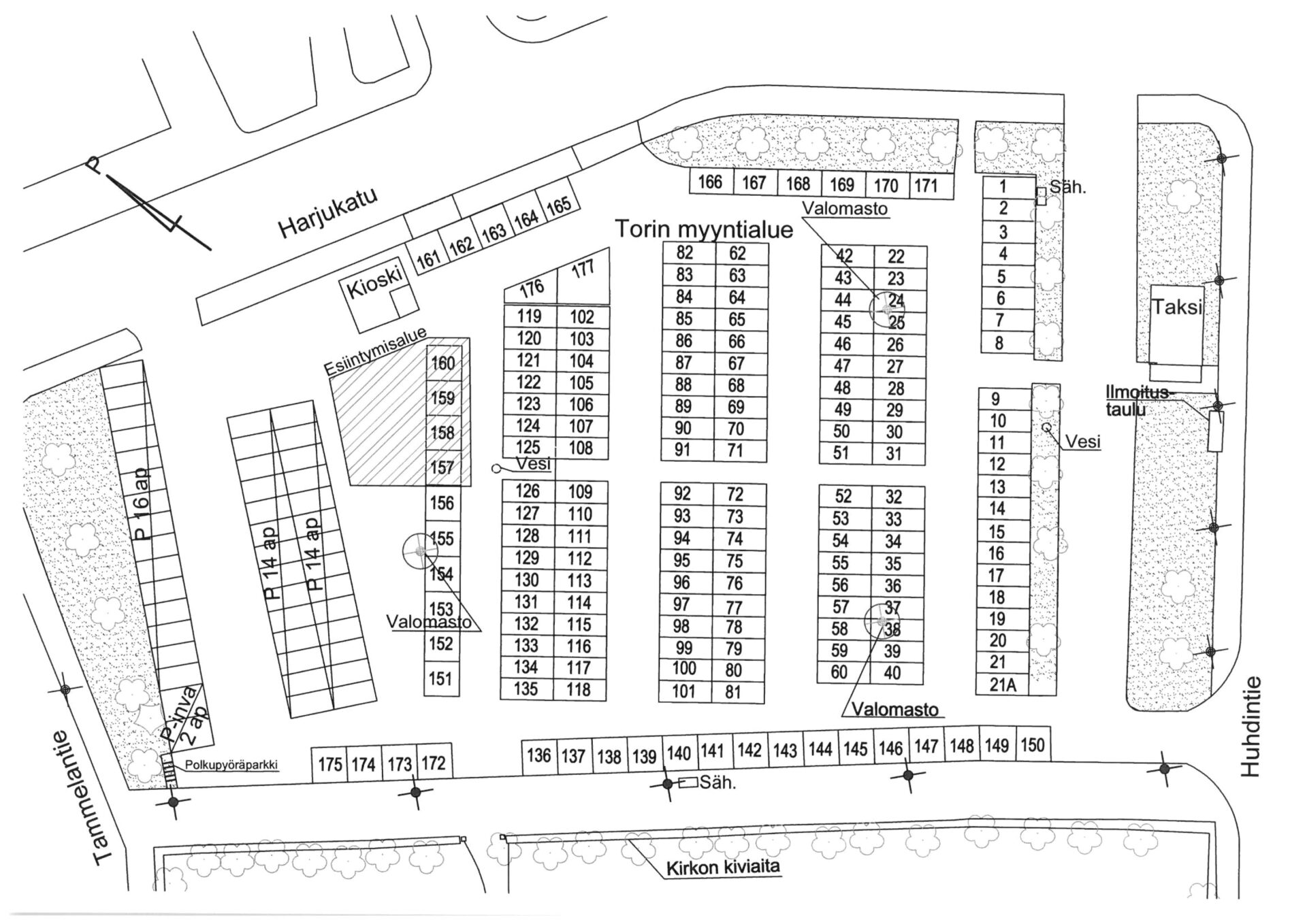 Tutustu torin myyntipaikkakarttaan ja kauppatorin myyntipaikkataksoihin Tekninen lautakunta on hyväksynyt taksat 13.11.2013 § 116.