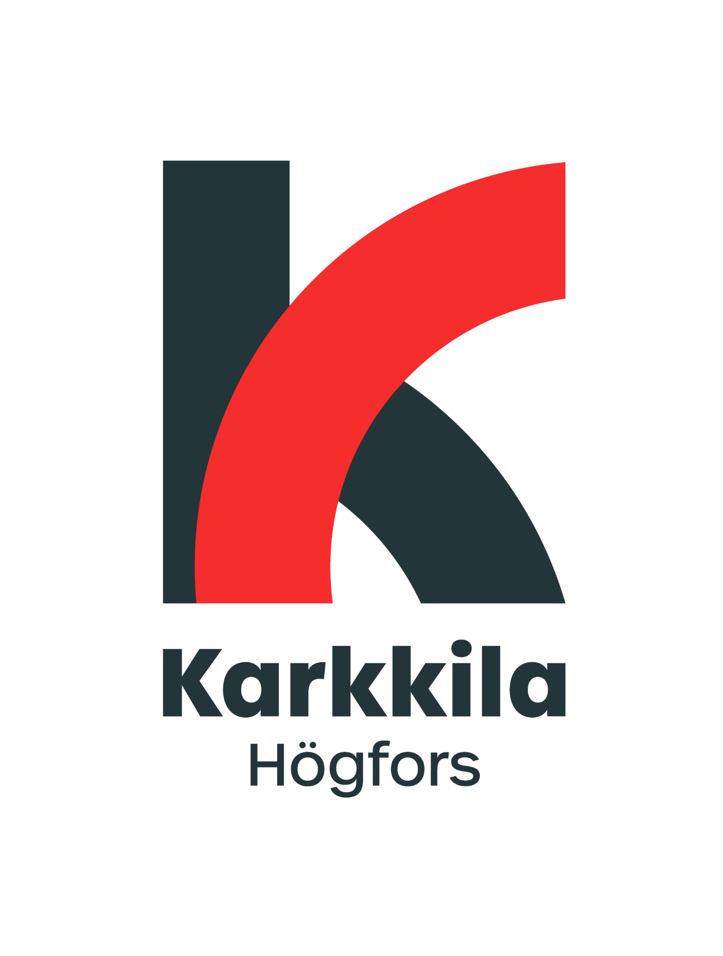 Karkkilan kaupungin logo koostuu modernista K-merkistä sekä tekstiosasta. K-merkki muodostuu punaisesta ja tummasta kaaresta sekä tummasta suorakaiteesta. Karkkilan kaupungin logoaineistot ovat ladattavissa alta.