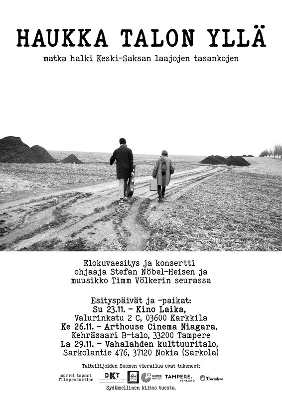 Stefan Nöbel-Heisen elokuva “Falke überm Haus” (suom. ”Haukka talon yllä”) on herkkä kuvaus yhdestä itäisen Saksan alueesta ja siellä elävistä ihmisistä. Tunnelmallinen, mustavalkoinen elokuva seuraa kahden muusikon, Timm Völkerin ja Patrice Lipebin konserImatkaa Sachsen-AnhalKn, Saksin ja Thüringenin osavaltiossa ja esittelee ihmisiä, jotka tekevät työtä kulttuurin hyväksi kaukana suurista keskuksista. “Falke überm Haus” -elokuva haluaa hälventää ihmisten mielissä edelleen eläviä kliseitä Saksan takapajuisesta ja ilottomasta itäosasta esittelemällä vallitsevaa todellisuutta tekijöiden omakohtaisten havaintojen ja elämysten kautta. ”Elokuvan tärkeitä teemoja ovat ystävyys, maisemat, eläimet, kirkko, koti ja kunnon snapsi - ja vähän blues- musiikkikin.” – Sitaatti elokuvasta.